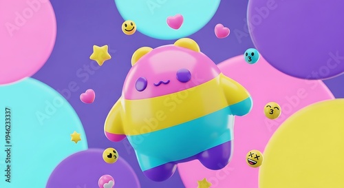 © Miftakhul, Fototapeta premium Playful Rainbow Creature Floating Amid Colorful Balloons.