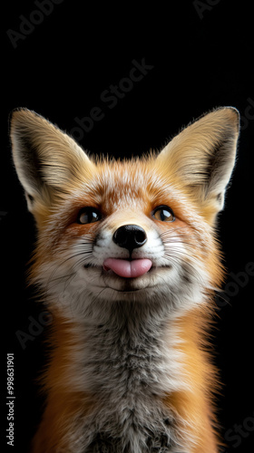 © Adem, Fototapeta premium playful red fox, looking directly at the camera with its tongue sticking out