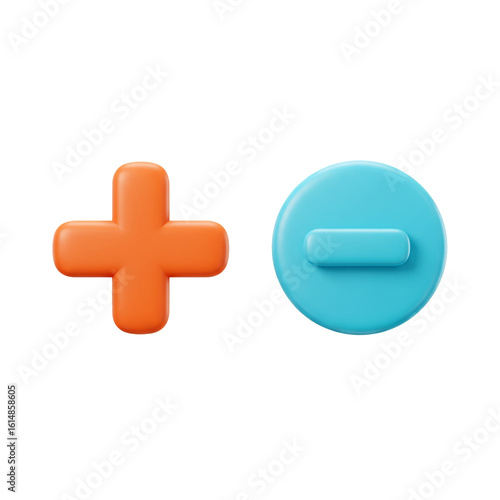 © Buka, Obraz premium Playful rendered symbols representing addition and subtraction float in space offering a simple visual representation of mathematical concepts.