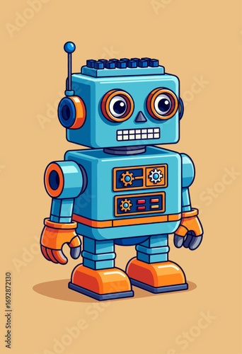 © NguynTh, Fototapeta premium Playful Retro Robot Standing on Orange Background