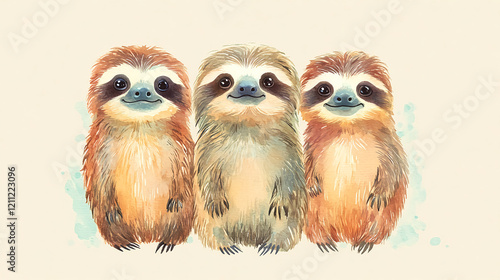 Fototapeta premium Playful sloths in a whimsical illustration colorful art nature scene creative...