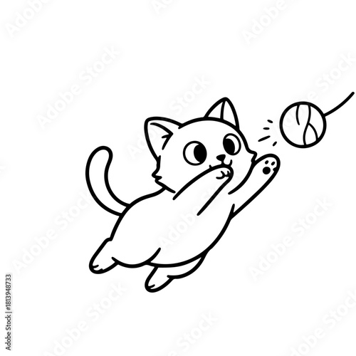 Fototapeta premium Playful Small Cat,Black and White Cartoon Coloring Page