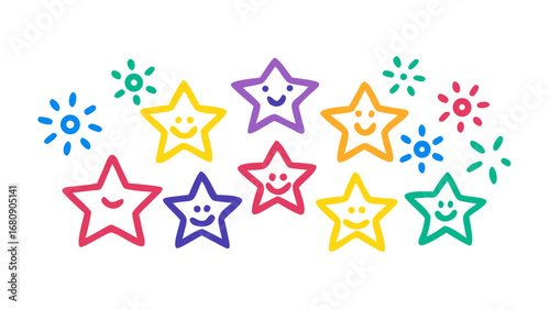 © RABBY MIA, Obraz premium Playful stars with happy faces and colorful bursts