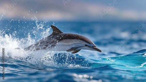 Obraz premium Playful striped dolphin making a splash as it jumps out of the ocean on a...