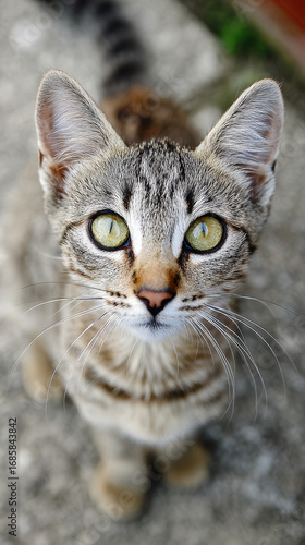 Fototapeta premium Playful tabby kitten backyard pet photography natural light close-up cute expressions