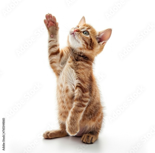 Fototapeta premium Playful Tabby Kitten Reaching High with Endearing Charm - Generative AI