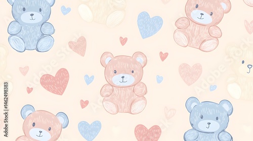 Obraz premium Playful teddy bears and hearts pattern design.