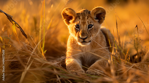 © Luuk, Obraz premium Playful Tiger Cub in Savanna Grassland