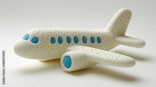 © ARYADI, Fototapeta premium Playful white airplane toy on plain background