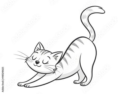 Obraz premium Playful White Cat Stretching with a Smile on Its Face Against a Transparent...