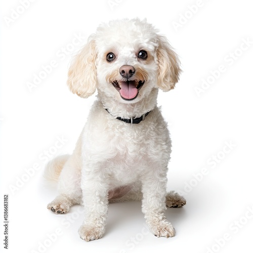 © Ganesha88, Obraz premium Playful white dog smiling in studio environment pet photography bright background
