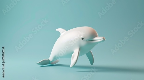 Obraz premium Playful White Dolphin 3D Render on Teal Background.