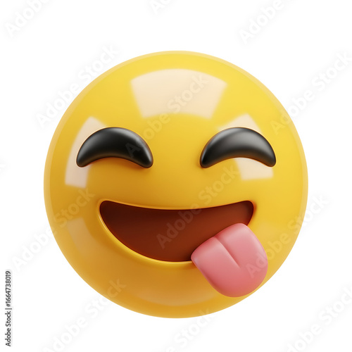 © Huzaifa, Fototapeta premium Playful yellow emoji sticking out its tongue with closed eyes and a wide smile, conveying joy and silliness, perfect for lighthearted communication.