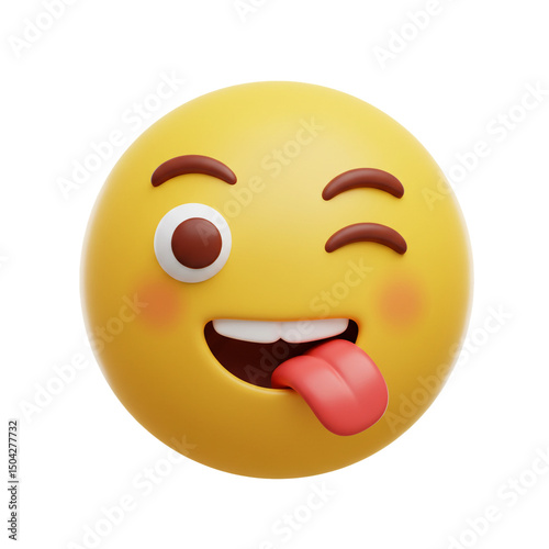 © Sriayu, Fototapeta premium Playful Yellow Emoji Winking and Sticking Out Tongue Rendered in 3D Style