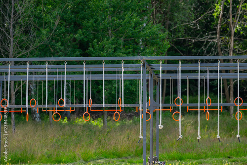 © Trygve, Fototapeta premium playground obstacle course with orange rings.