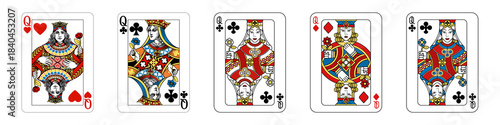 Fototapeta premium Playing card collection. A collection of five cards lined up next to each...