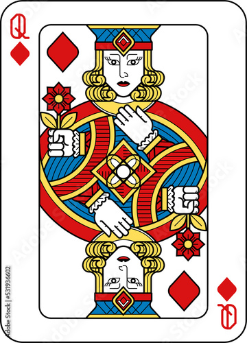Fototapeta premium Playing Card Queen Diamonds Yellow Red Blue Black