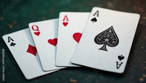 Obraz premium Playing cards arranged in a classic ace sequence , suits, hearts