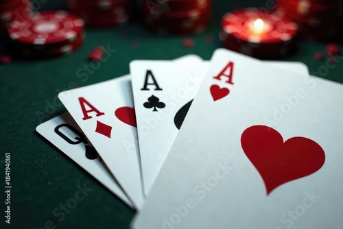 Fototapeta premium Playing cards arranged in an ace high sequence, design, low