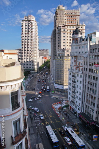 © othman, Fototapeta premium Plaza de Espana square with the Espana building in the background. Downtown Madrid, Spain.