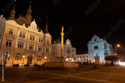 Fototapeta premium PLaza del pueblo de Turnov de noche en la Republica Checa