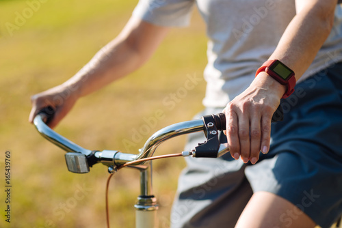 © zinkevych, Obraz premium Pleasant adult woman riding her bicycle