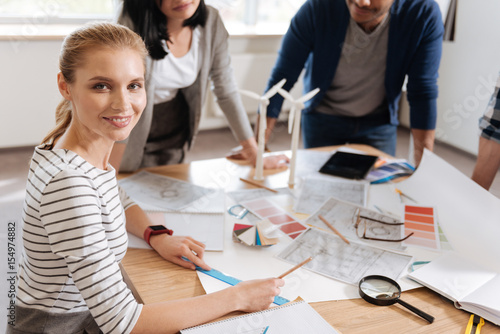 © Viacheslav Yakobchuk, Fototapeta premium Pleasant female engineer enjoying her job