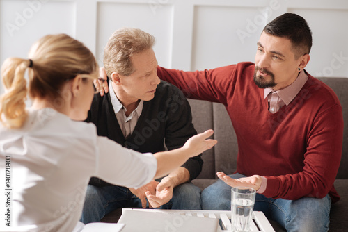 Fototapeta premium Pleasant professional psychologist discussing her patients problems