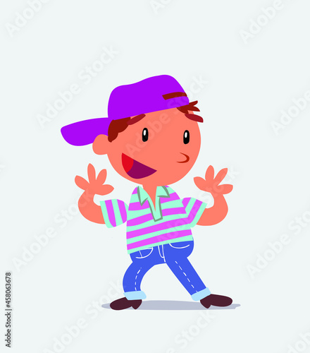 Fototapeta premium Pleasantly surprised cartoon character of little boy on jeans.