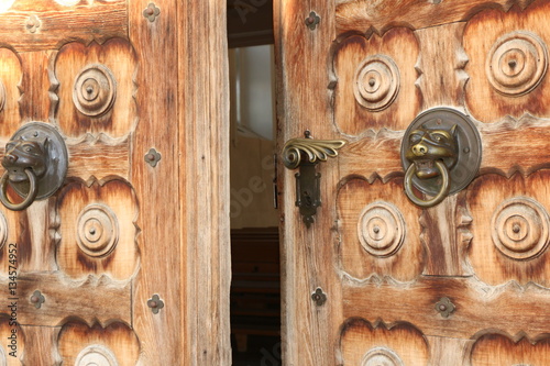 © vulkanismus, Fototapeta premium Please come in! Bitte eintreten! Geöffnetes Portal, geöffnete alte Türe