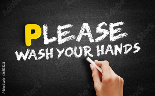 © dizain, Fototapeta premium Please Wash Your Hands text on blackboard, concept background