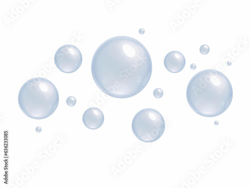 Obraz premium Plenty of bubbles float in the air. Big and small blue water droplets, white...