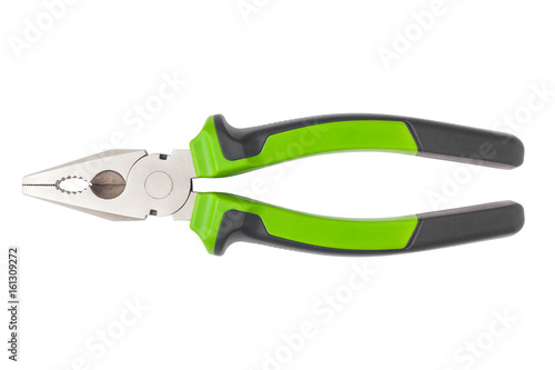 Obraz premium Pliers with green pen, clipping path, white background, high quality photo