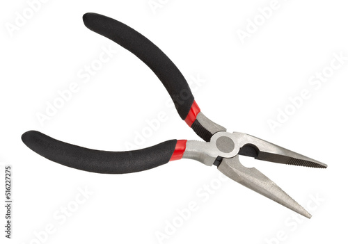 © leventina, Obraz premium Pliers with red and black handles, isolated on white background. Hand tools for repair.