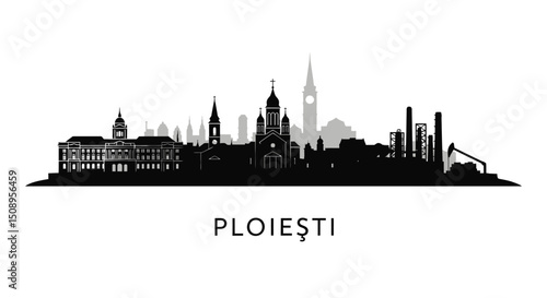 Fototapeta premium Ploiesti Romania Skyline Silhouette.