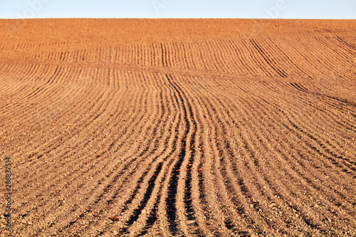 © Alvydas, Naklejka premium Plough agriculture field before sowing.
