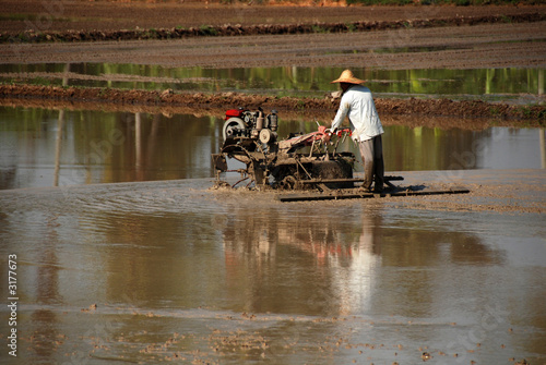 © Wong Hock Weng, Obraz premium plough machine and farmer