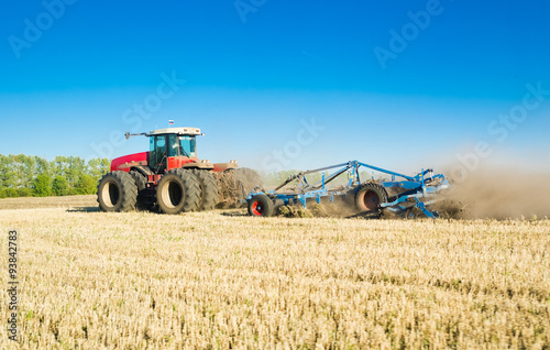 © Valeri Luzina, Obraz premium Ploughing heavy tractor during cultivation agriculture works at