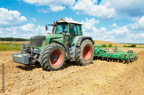Fototapeta premium Ploughing tractor at field cultivation work