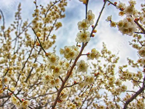 © Busan Drone, Obraz premium Plum Blooming in Spring, Haeundae, Busan, South Korea, Asia