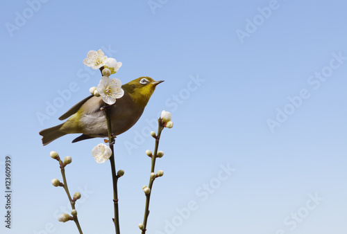 © mytree, Fototapeta premium plum blossoms and a bird called Japanese White-eye