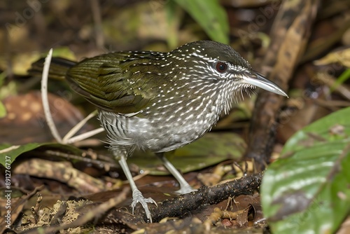 © Pure Stock, Fototapeta premium Plumbeous Antbird Myrmeciza hyperythra foraging on the forest floor in the Amazon rainforest also called Formigueiroplmbeo