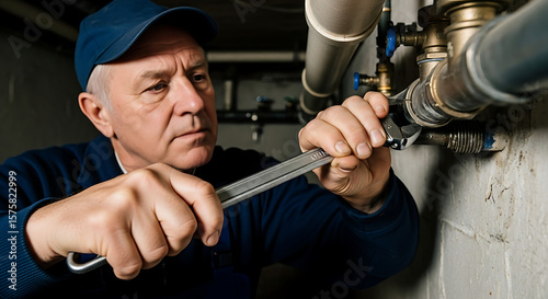 © Isantoh, Obraz premium Plumber Fixing a Clogged Drain
