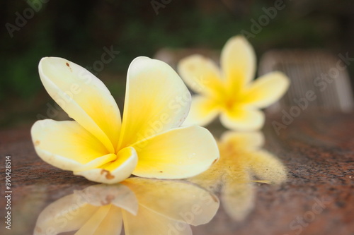 Naklejka premium Plumeria bali flowers on the table.