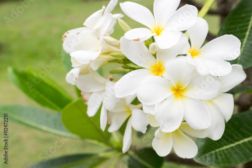 Obraz premium Plumeria bouquet, white plumeria flowers on tree
