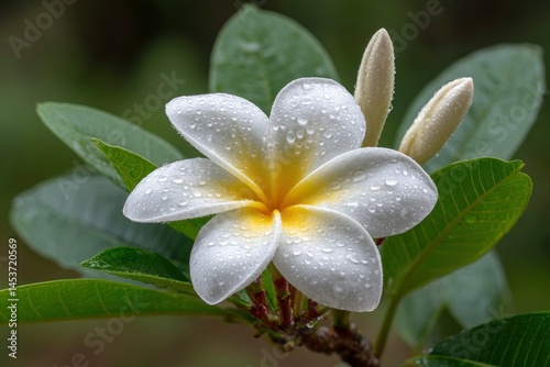 © Dzikrul Husnani, Fototapeta premium Plumeria Flower with Water Droplets