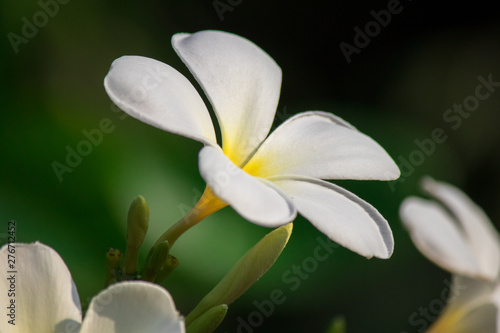 © nuttapon, Obraz premium Plumeria frangipani Apocynaceae White flower green leaf