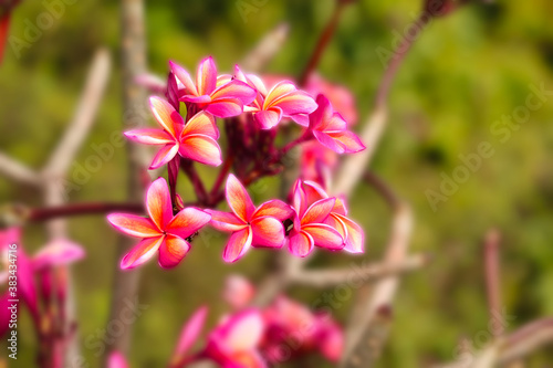 © darkfoxelixir, Fototapeta premium Plumeria pink yellow white flower and frangipani floral