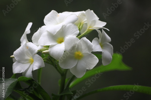 Fototapeta premium Plumeria Pudica (Bridal Bouquet Plumeria, White Frangipani, Fiddle Leaf...
