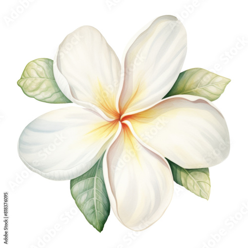 Fototapeta premium Plumeria, Tropical Flower Illustration. Watercolor Style. AI Generated